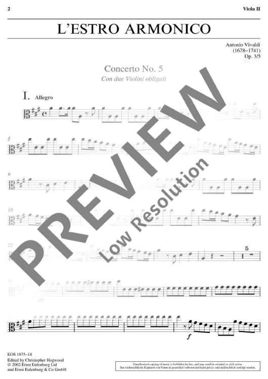 "L'estro Armonico - Viola Ii" Sheet Music by Antonio Vivaldi