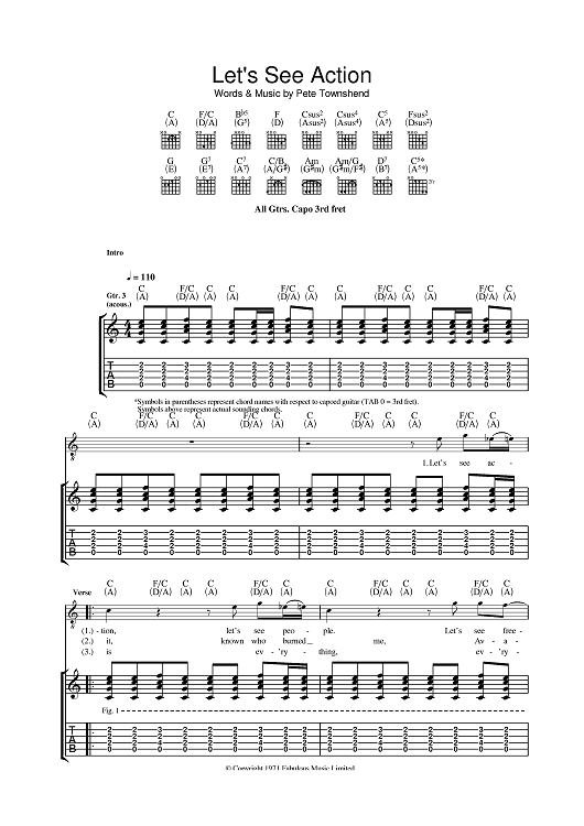 Digital Sheet Music for Let's See Action by The Who, Pete Townshend scored for Guitar Tab; id:398840