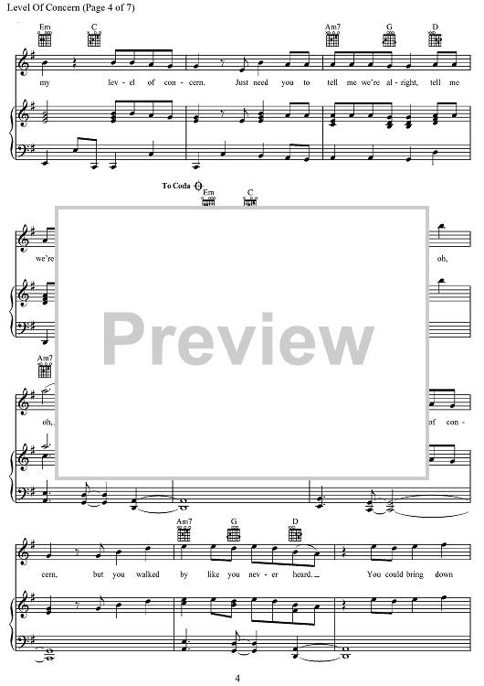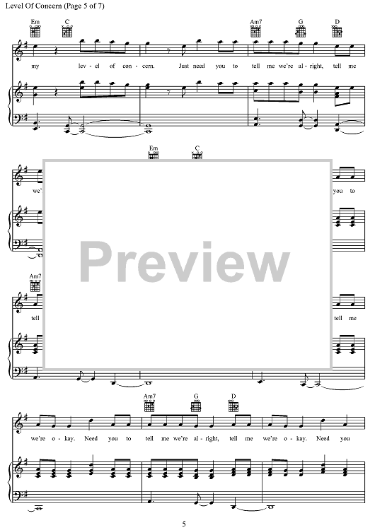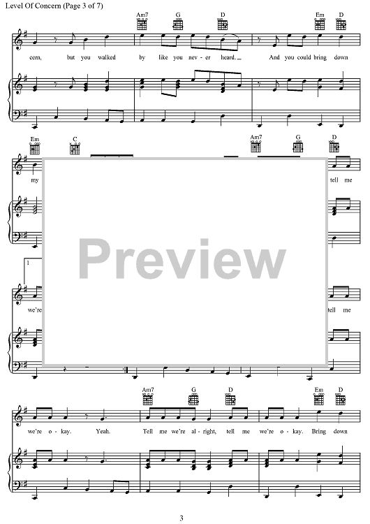 Digital Sheet Music for Level Of Concern by Tyler Joseph, Twenty One Pilots scored for Piano/Vocal/Chords; id:468407