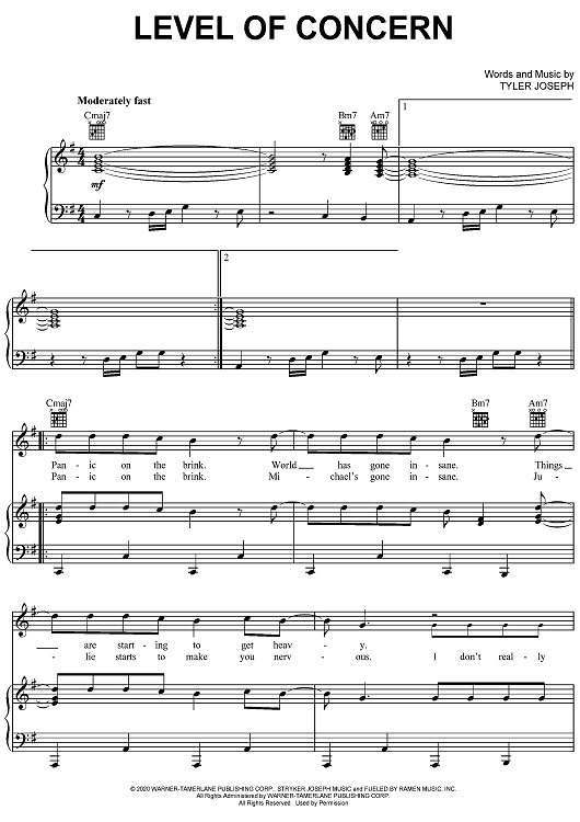 "Level Of Concern" Sheet Music by Twenty One Pilots