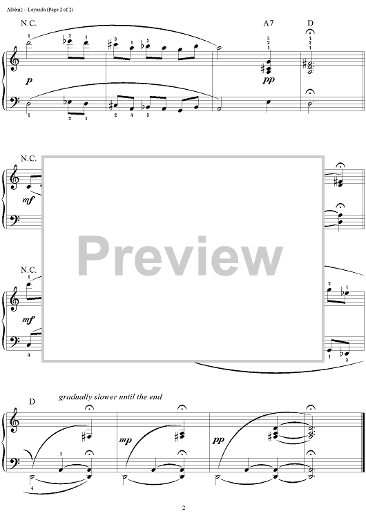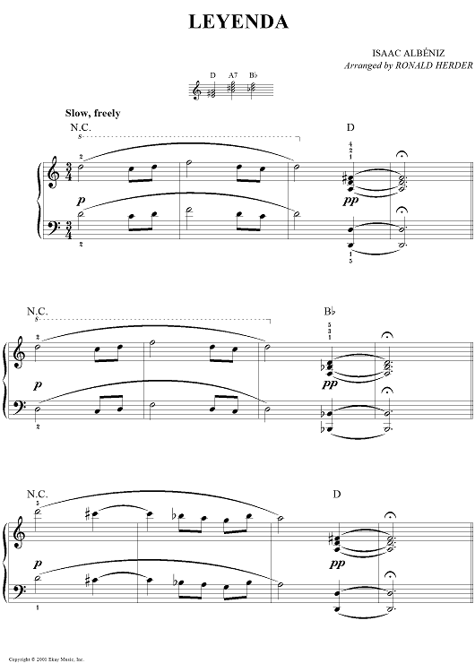 Digital Sheet Music for Leyenda by Isaac Albéniz, Ronald Herder scored for Easy Piano; id:284882