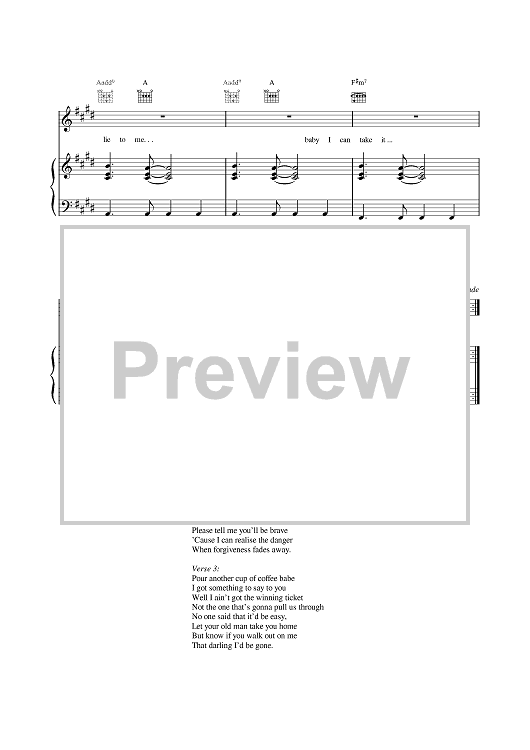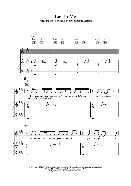 Digital Sheet Music for Lie To Me by Bon Jovi scored for Piano/Vocal/Chords; id:376014