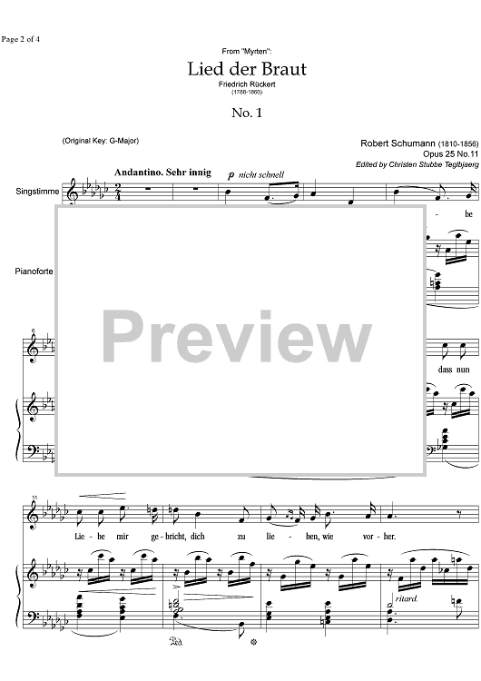 Digital Sheet Music for Lied der Braut No. 1 Op.25 No.11 by , Robert Schumann scored for Soprano or Tenor/Piano; id:332480