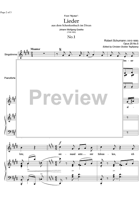 Digital Sheet Music for Lieder No. 1 aus dem Schenkenbuch im Divan Op.25 No. 5 by , Robert Schumann scored for Soprano or Tenor/Piano; id:332449