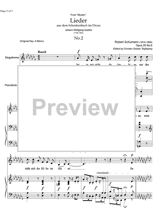 Digital Sheet Music for Lieder No. 2 aus dem Schenkenbuch im Divan Op.25 No. 6 by , Robert Schumann scored for Soprano or Tenor/Piano; id:332456