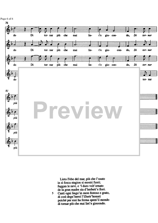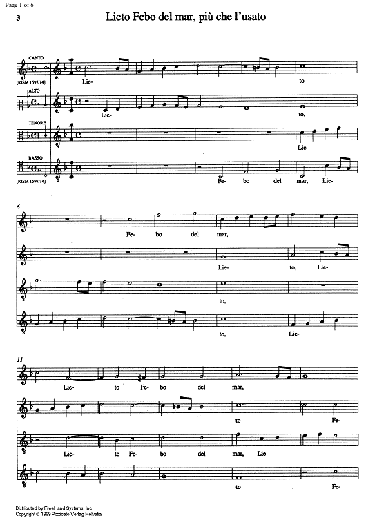 Digital Sheet Music for Lieto Febo del mar, più che l'usato by , Alessandro Orologio scored for SATB Choir; id:333989