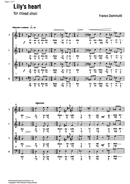Digital Sheet Music for Lily's heart by , Franco Dominutti scored for SATB Choir; id:330824