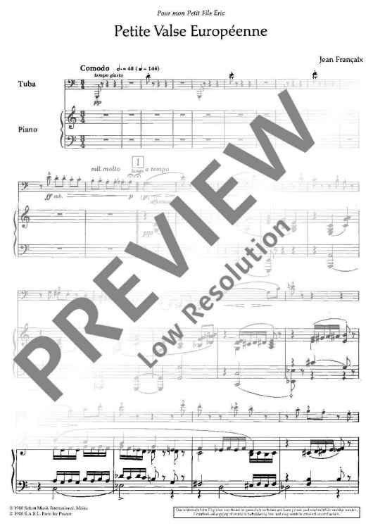 Digital Sheet Music for Little European Waltz - Piano Score and Solo Part by Jean Françaix scored for Tuba and 10 Wind Instruments; id:473753