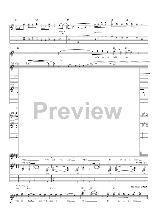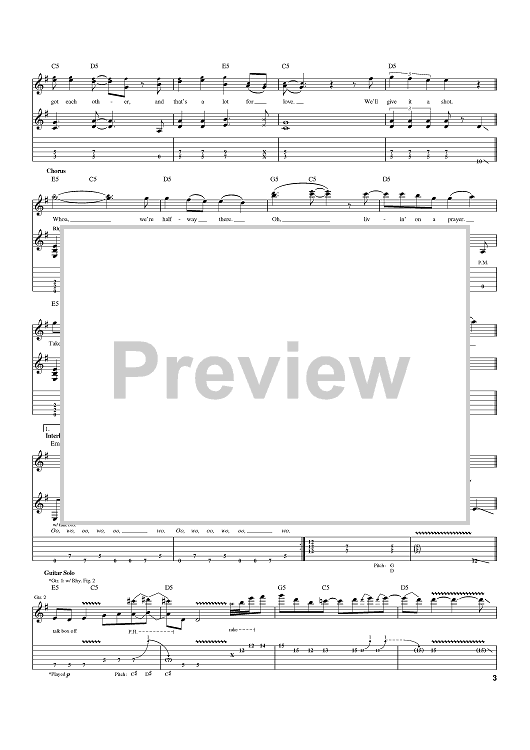 Digital Sheet Music for Livin' On A Prayer by Bon Jovi, Richie Sambora, Desmond Child, Jon Bon Jovi scored for Guitar Tab; id:400239