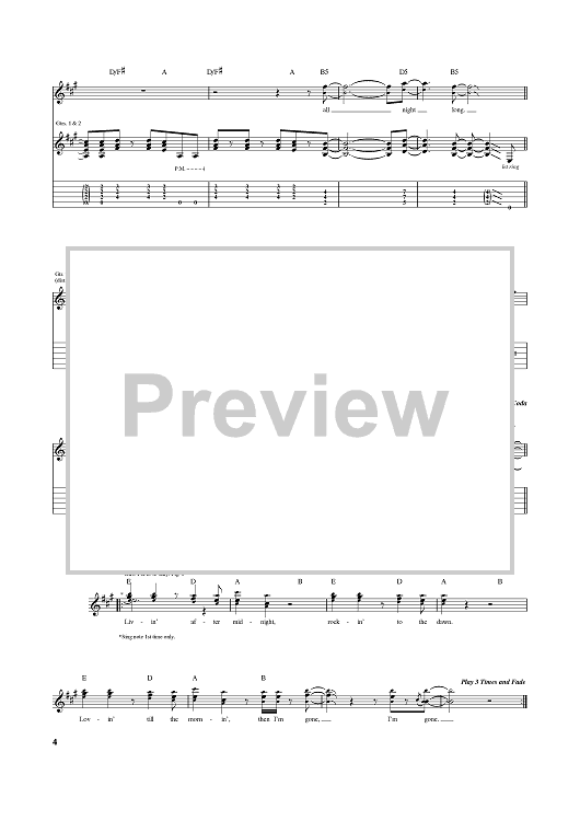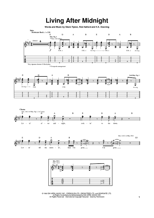 Digital Sheet Music for Living After Midnight by Rob Halford, Glenn Tipton, K.K. Downing, Judas Priest scored for Guitar Tab; id:367892
