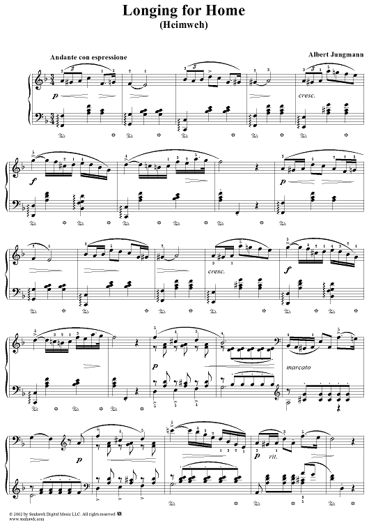 Digital Sheet Music for Longing for Home by Albert Jungmann scored for Piano Solo; id:258696