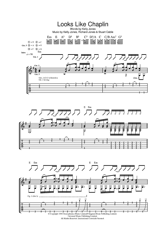 Digital Sheet Music for Looks Like Chaplin by Kelly Jones, Richard Jones, Stereophonics scored for Guitar Tab; id:393446