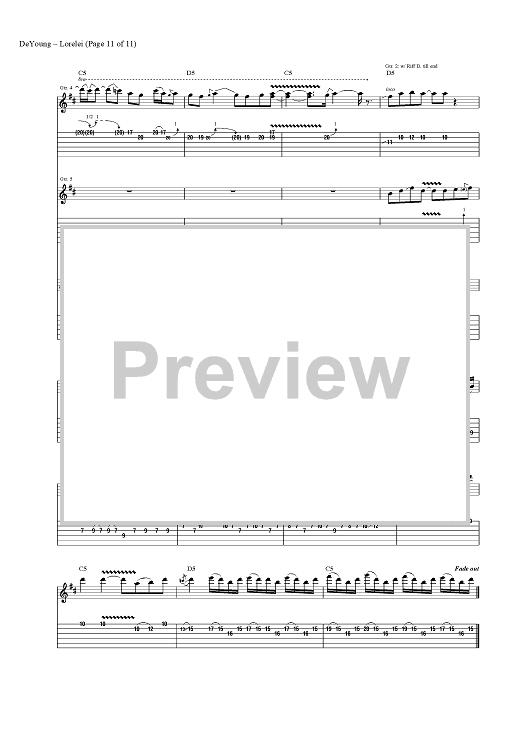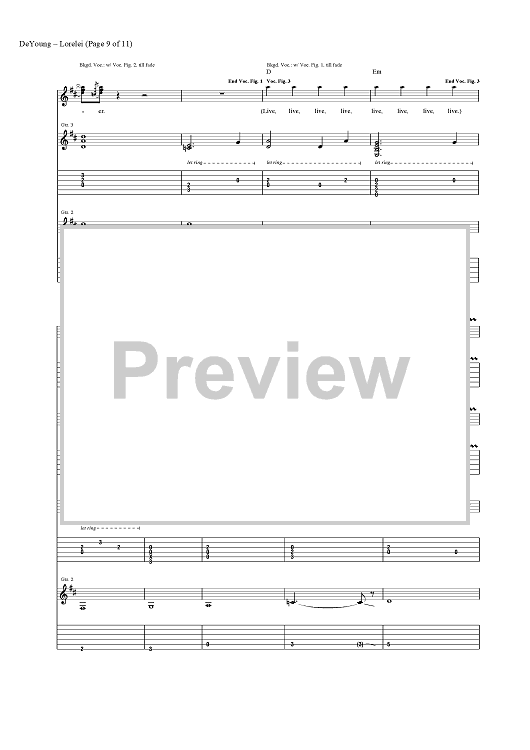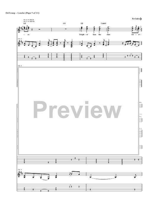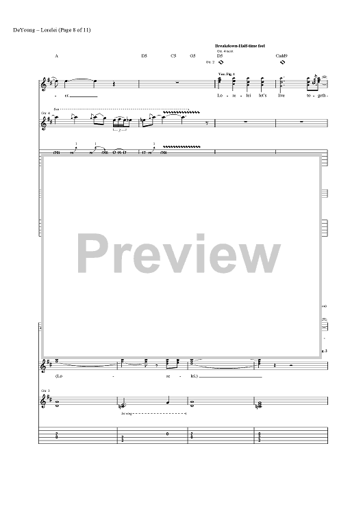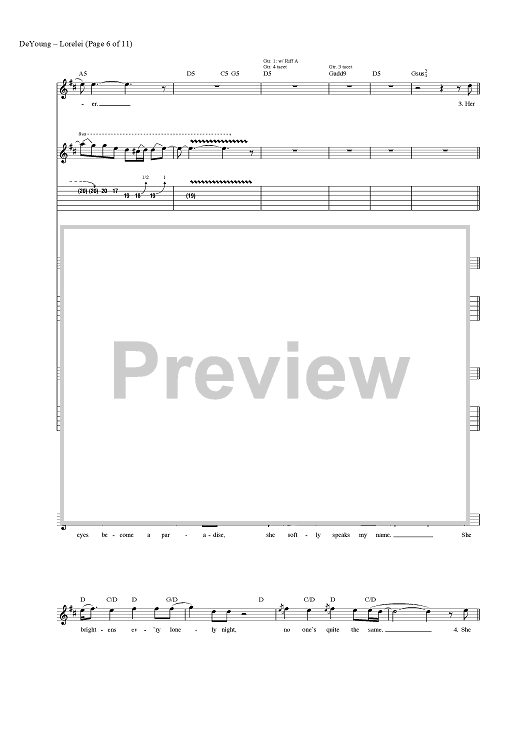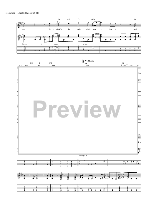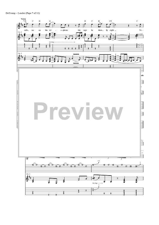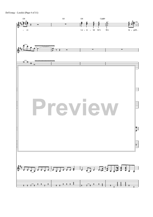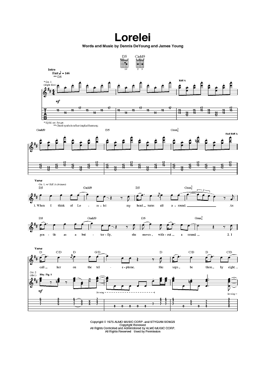 Digital Sheet Music for Lorelei by Styx, Dennis DeYoung, James Young scored for Guitar Tab/Vocal; id:452306