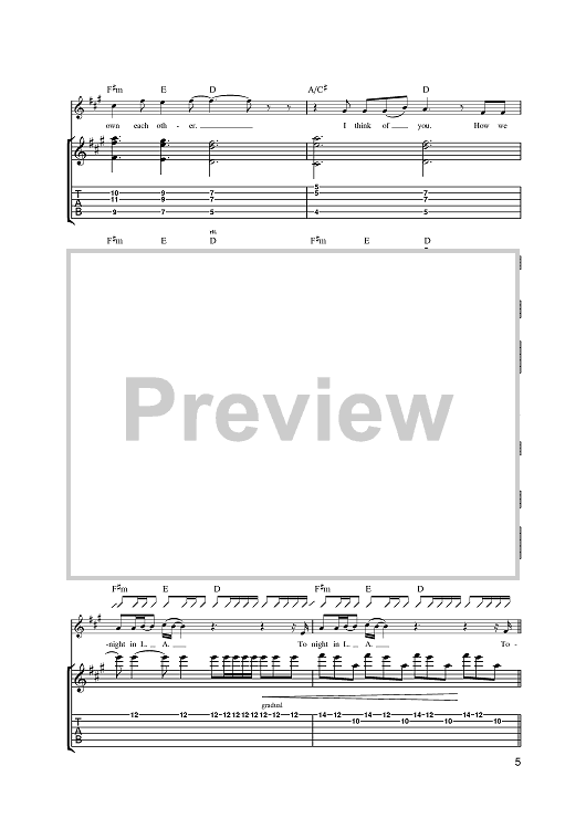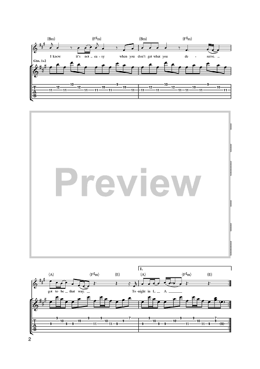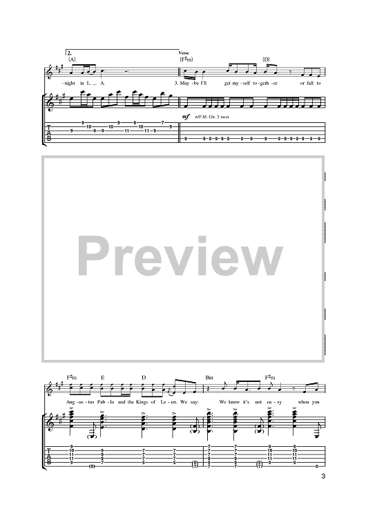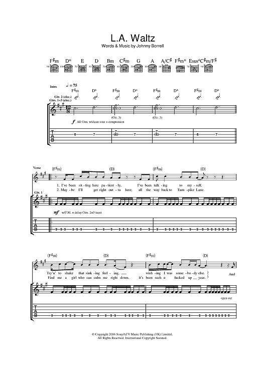 Digital Sheet Music for Los Angeles Waltz by Johnny Borrell, Razorlight scored for Guitar Tab; id:395721