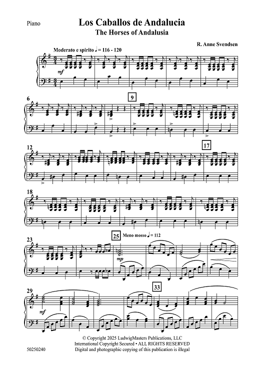 "Los Caballos de Andalucia: The Horses of Andalusia - Piano" Sheet Music by R. Anne Svendsen