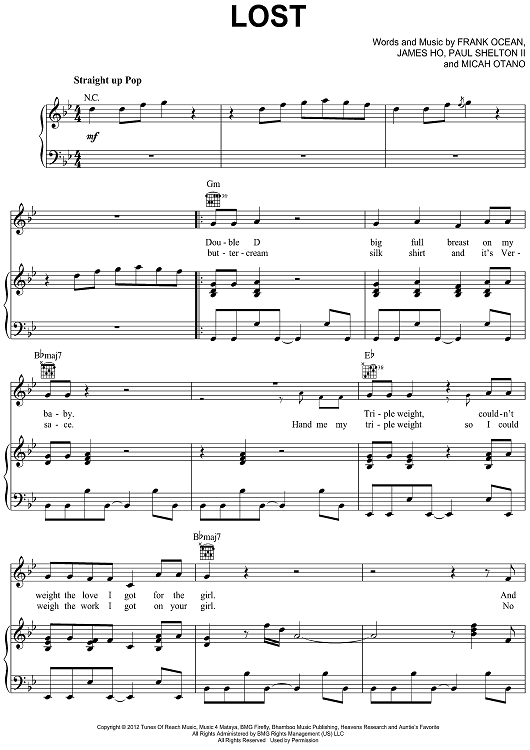 Digital Sheet Music for Lost by Frank Ocean, Malay, Micah Otano scored for Piano/Vocal/Chords; id:500159