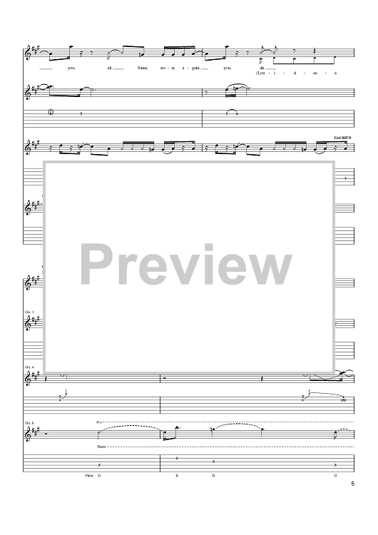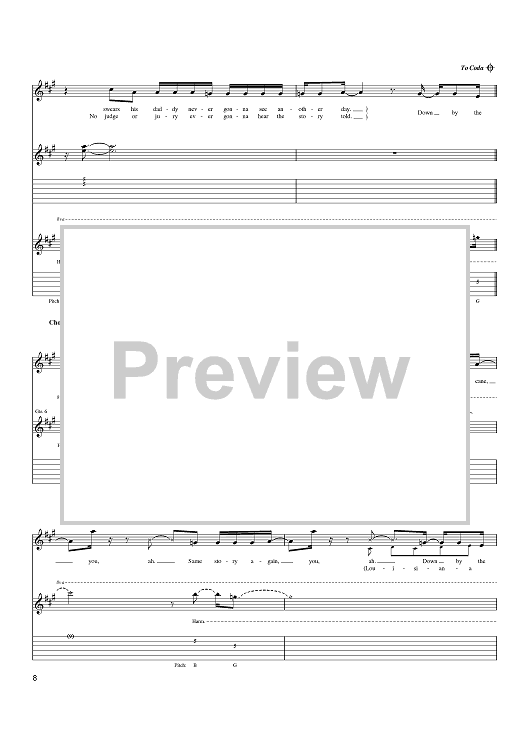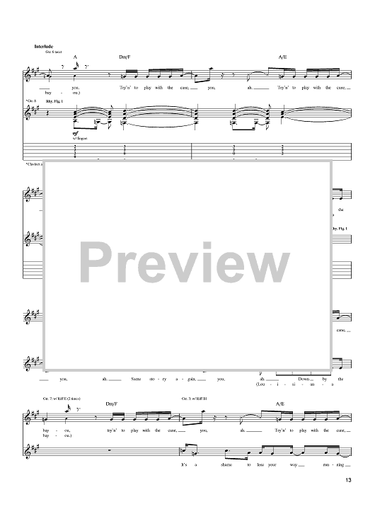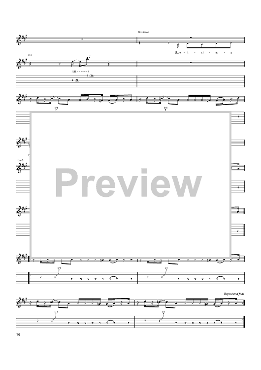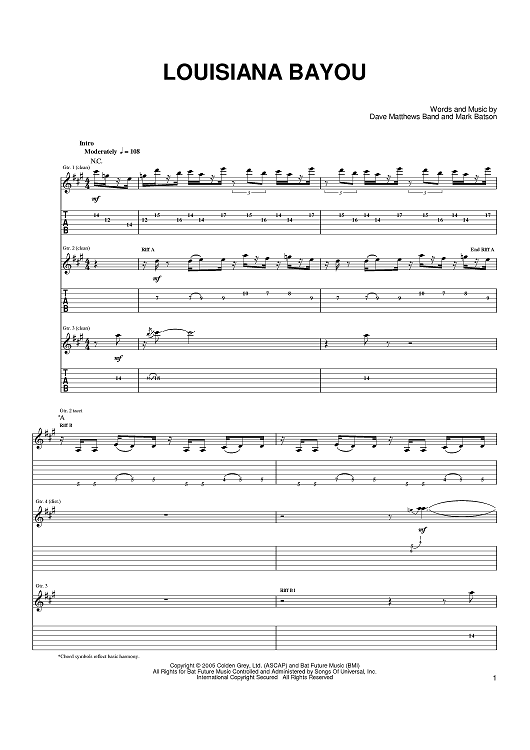 Digital Sheet Music for Louisiana Bayou by Dave Matthews Band, Mark Batson scored for Guitar Tab; id:402169