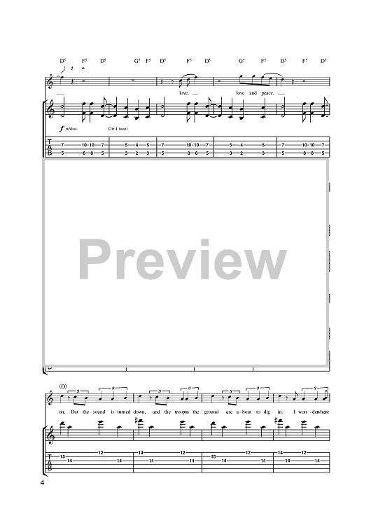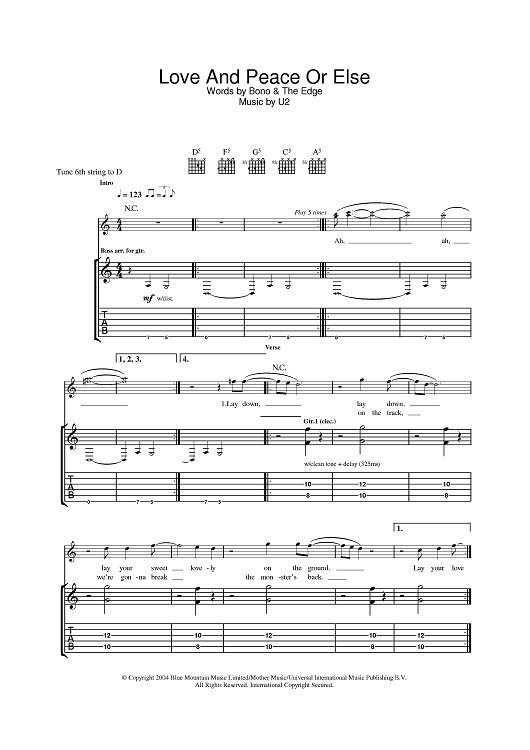 Digital Sheet Music for Love And Peace Or Else by U2, Bono, The Edge scored for Guitar Tab; id:381722