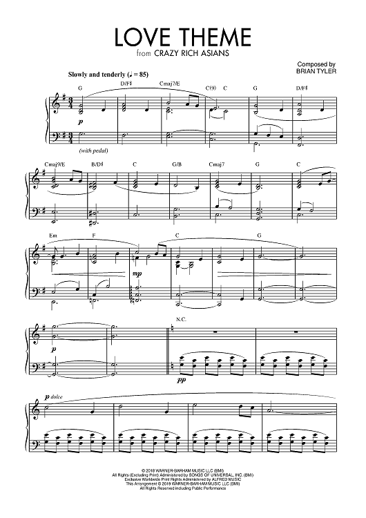 Digital Sheet Music for Love Theme - from Crazy Rich Asians by Brian Tyler scored for Piano Solo; id:466668
