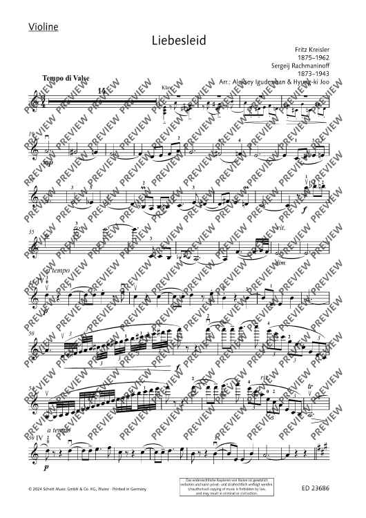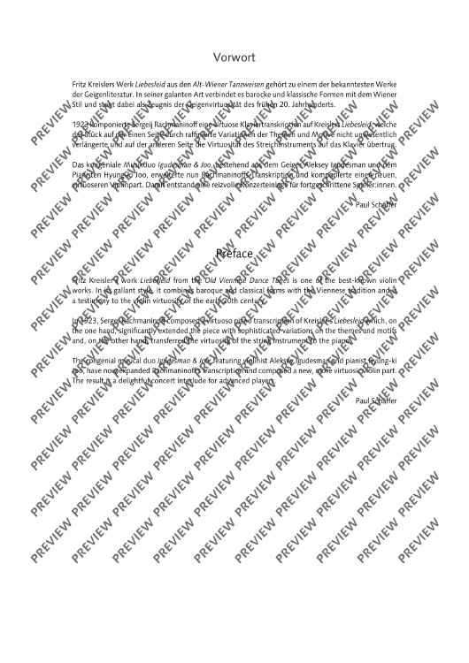 Das kongeniale Musikduo Igudesman & Joo bearbeitet Rachmaninoffs Klaviertranskription von Kreislers "Liebesleid" für Violine und Klavier. Es entsteht ein virtuoses Wechselspiel zwischen den beiden Spielern. Hervorragend als Konzerteinlage oder Zugabe.