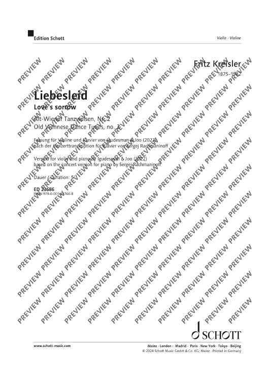"Love’s Sorrow - Score and Parts" Sheet Music by Fritz Kreisler