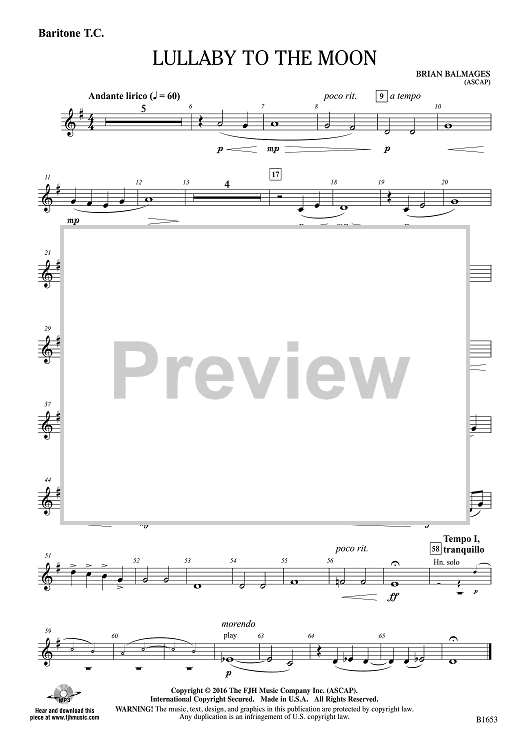 Digital Sheet Music for Lullaby to the Moon - Baritone TC by Brian Balmages scored for Concert Band; id:508823