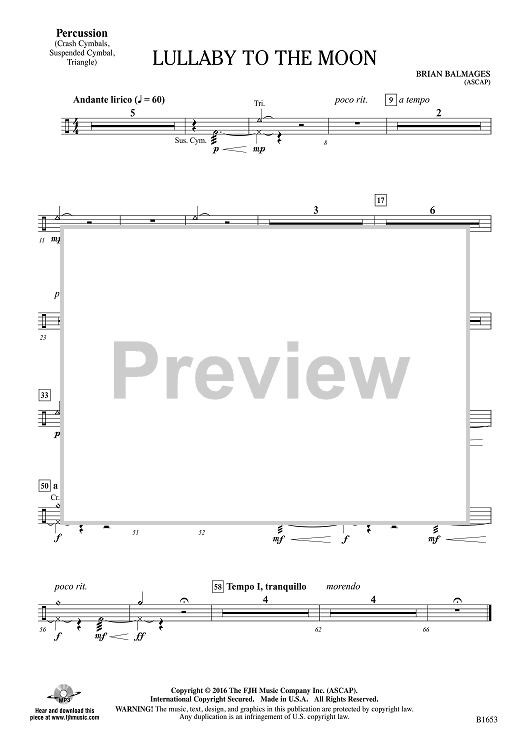 Digital Sheet Music for Lullaby to the Moon - Percussion by Brian Balmages scored for Concert Band; id:508829