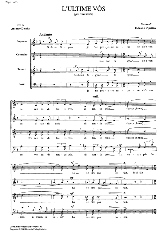 Digital Sheet Music for L'ultime vôs by , Orlando Dipiazza scored for SATB Choir; id:333861