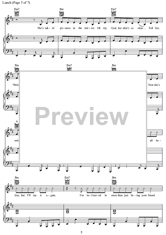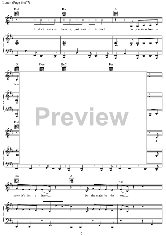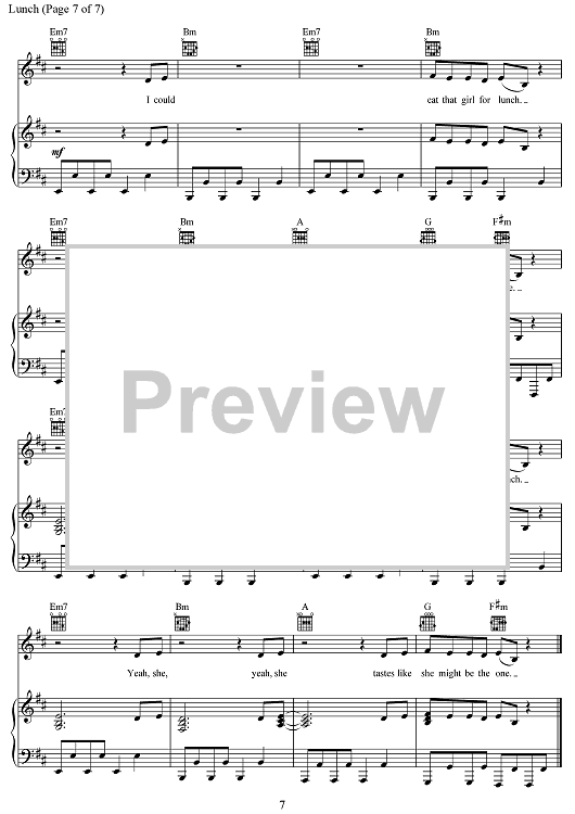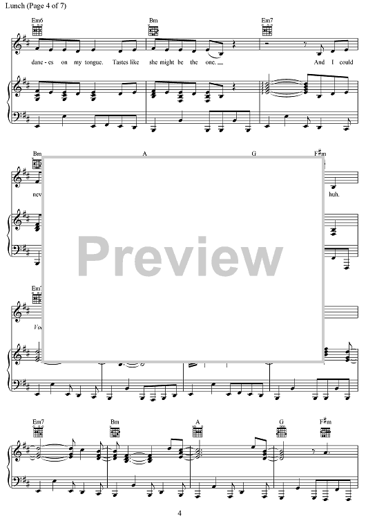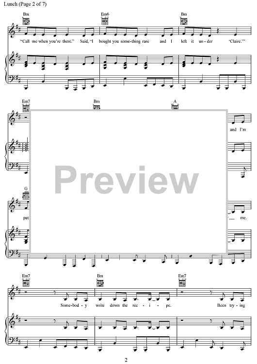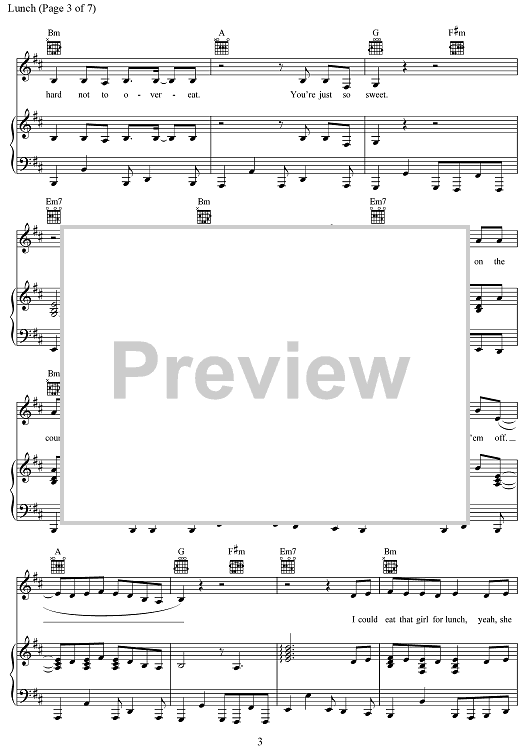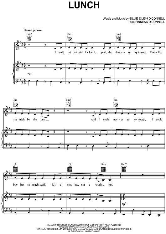Digital Sheet Music for Lunch by Billie Eilish, Finneas O'Connell scored for Piano/Vocal/Chords; id:502041