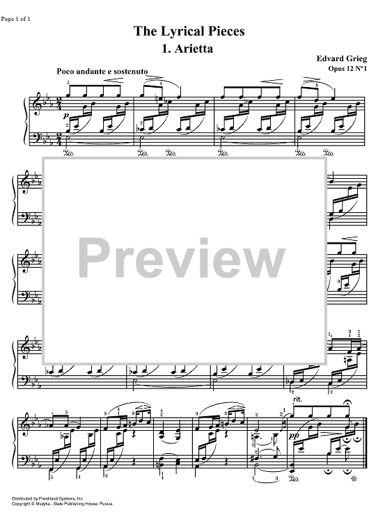Digital Sheet Music for Lyrical Pieces Op.12 No. 1 - Arietta by Edvard Grieg scored for Piano Solo; id:322622