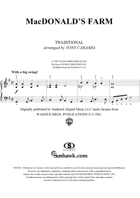 Digital Sheet Music for MacDonald's Farm by Tony Caramia, Traditional scored for Easy Piano; id:287406