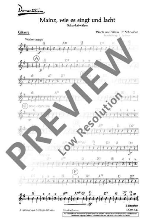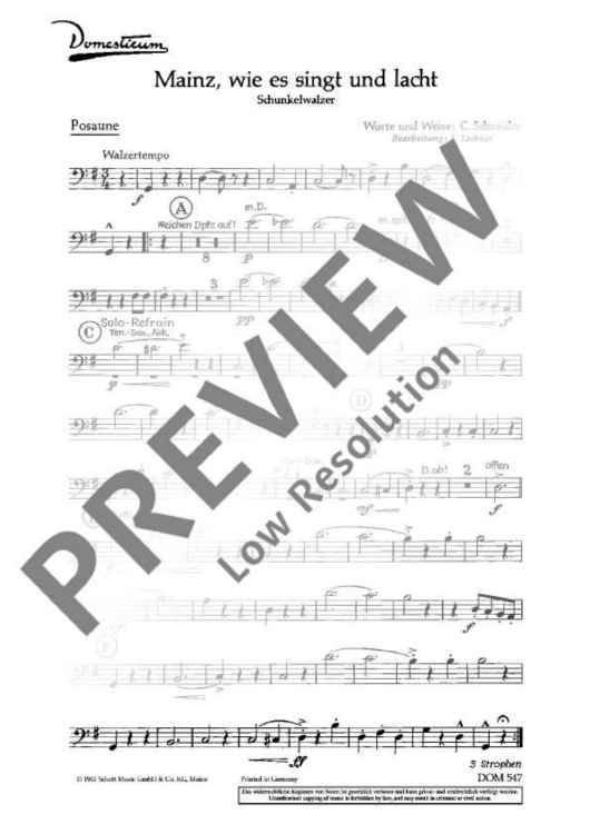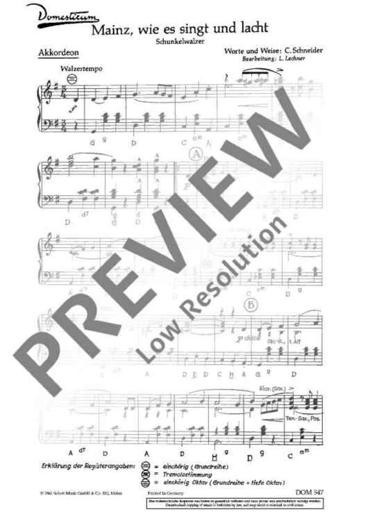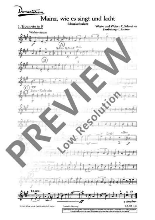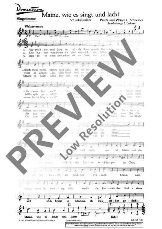 "Mainz, wie es singt und lacht / Ich setz mich in mei Eckelche - Score and Parts" Sheet Music by Carl Schneider