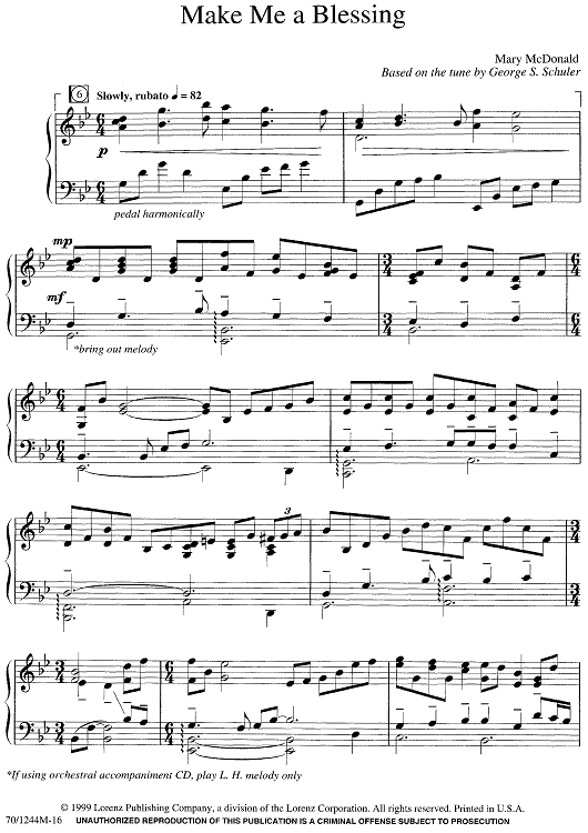 Digital Sheet Music for Make Me a Blessing by George S. Schuler, Mary McDonald scored for Piano Solo; id:433932
