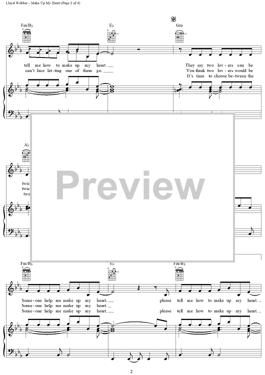 "Make Up My Heart" Sheet Music by Andrew Lloyd Webber