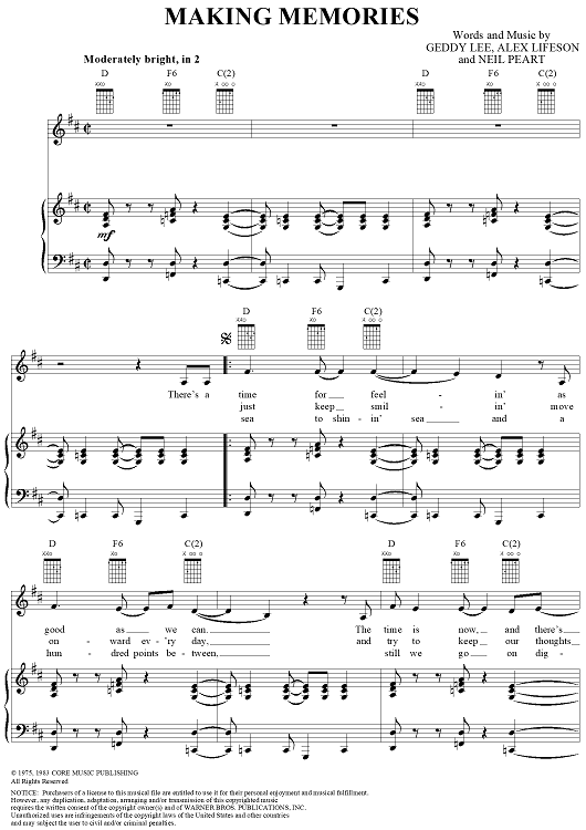 "Making Memories" Sheet Music by Rush