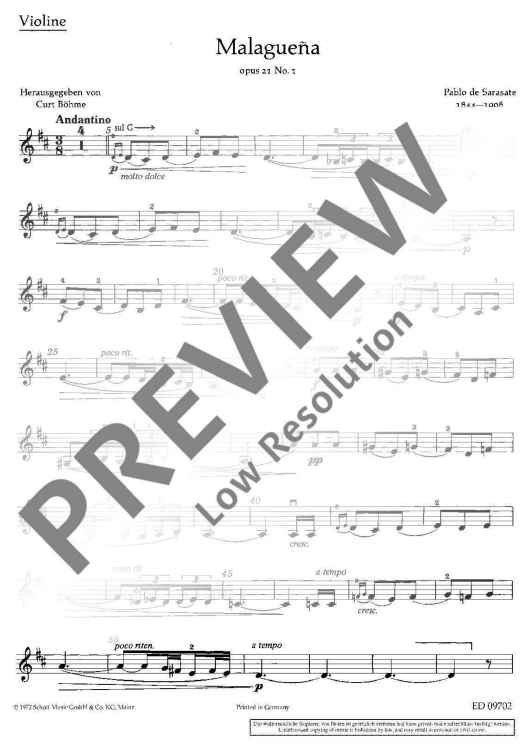 Digital Sheet Music for Malagueña by Martín Melitón Pablo de Sarasate y Navascuez scored for Violin And Piano; id:475034