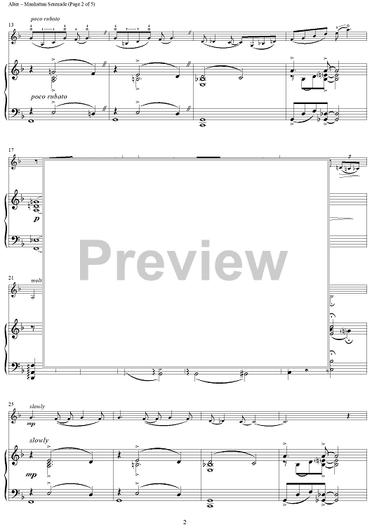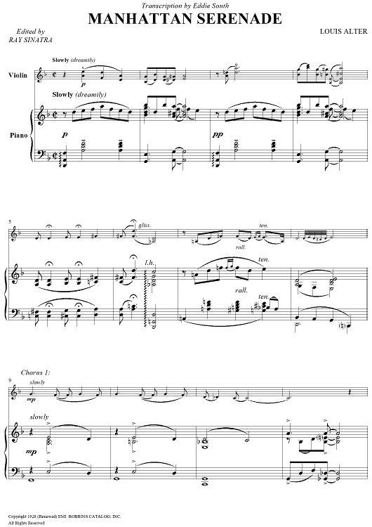 Digital Sheet Music for Manhattan Serenade - Piano Score by Louis Alter, Eddie South scored for Violin and Piano; id:365023