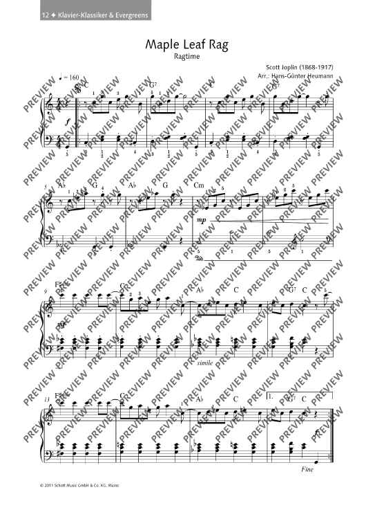 Digital Sheet Music for Maple Leaf Rag by Scott Joplin, Hans-Guenter Heumann scored for Piano; id:483263