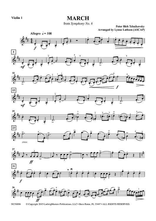 Digital Sheet Music for March from Symphony No. 6 - Violin 1 by Peter Ilyich Tchaikovsky, Lynne Latham scored for String Orchestra; id:458836