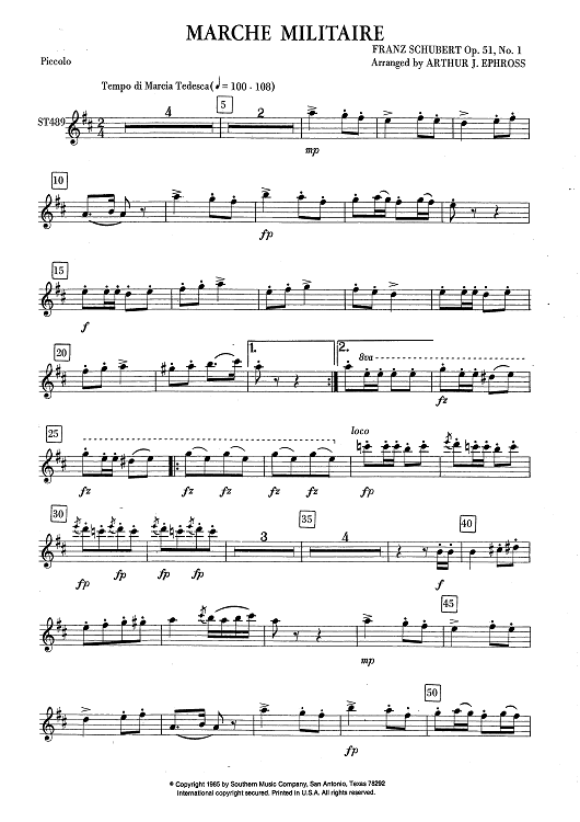 "March Militaire - Piccolo" Sheet Music by Franz Schubert