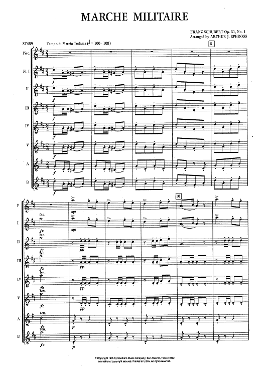 "March Militaire - Score" Sheet Music by Franz Schubert
