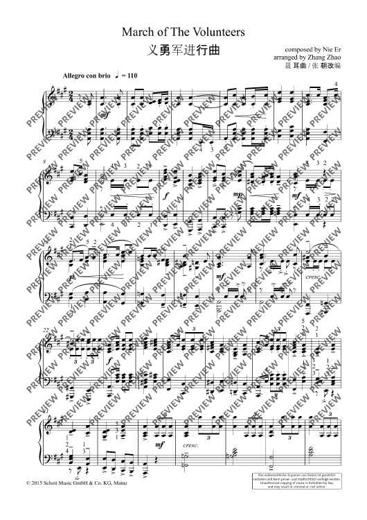 Digital Sheet Music for March of The Volunteers by Nie Er, Zhao Zhang scored for Piano; id:490031