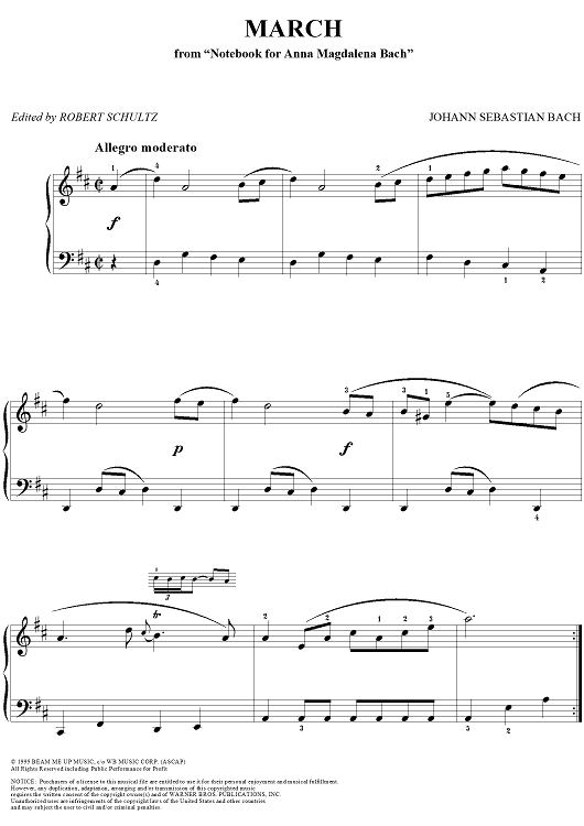 Digital Sheet Music for March by Johann Sebastian Bach scored for Easy Piano; id:284679