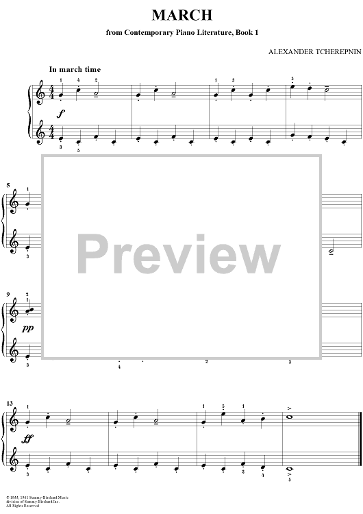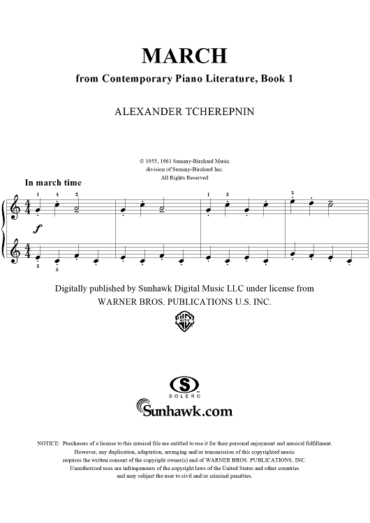 Digital Sheet Music for March by Alexander Tcherepnin scored for Easy Piano; id:289531