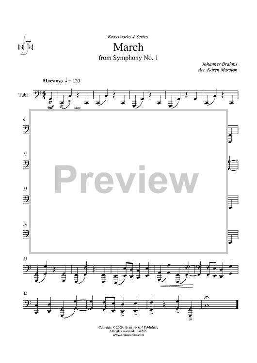 Digital Sheet Music for March - Tuba by Johannes Brahms, Karen Marston scored for Brass Quartet; id:411298