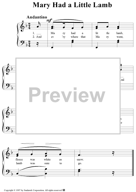 Digital Sheet Music for Mary Had a Little Lamb by Traditional, Sarah Josepha Hale scored for Easy Piano/Vocal; id:94578