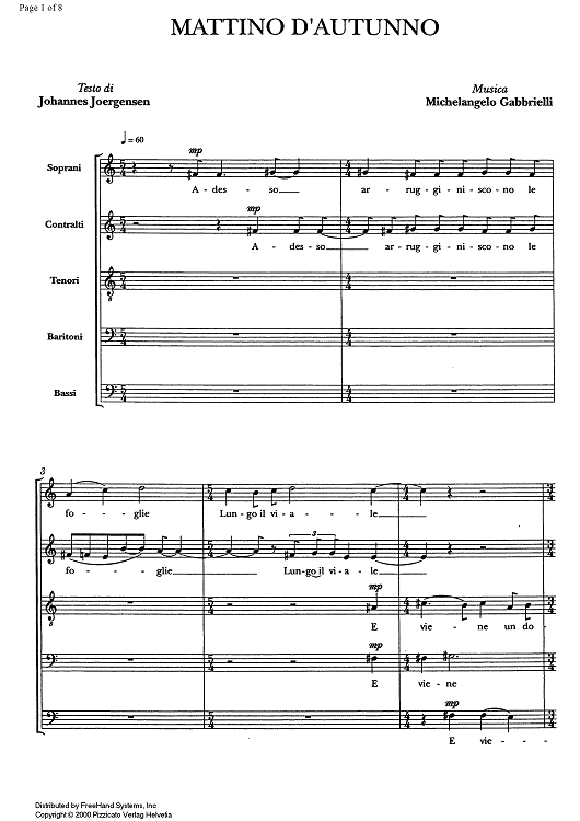 Digital Sheet Music for Mattino d'Autunno by , Michelangelo Gabbrielli scored for SATB Choir; id:330467