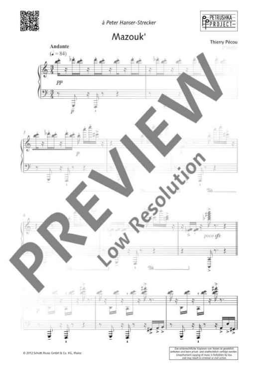 Digital Sheet Music for Mazouk' by Thierry Pécou scored for Piano; id:480927