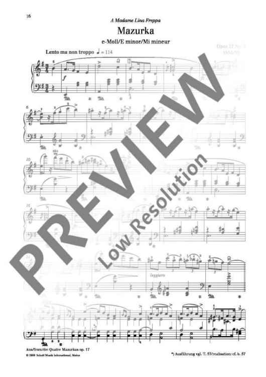 Digital Sheet Music for Mazurka E minor by Frederic Chopin scored for Piano; id:487470