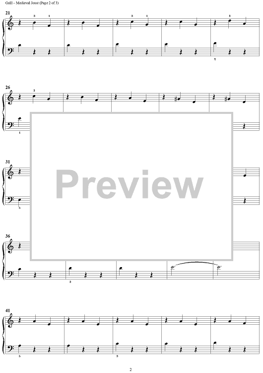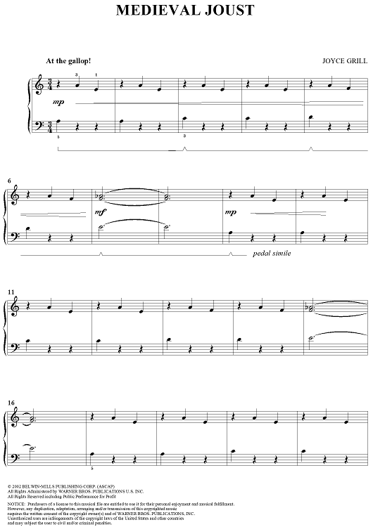 Digital Sheet Music for Medieval Joust by Joyce Grill scored for Easy Piano; id:287273
